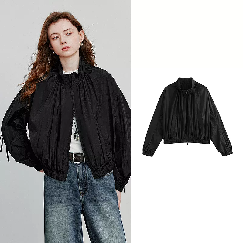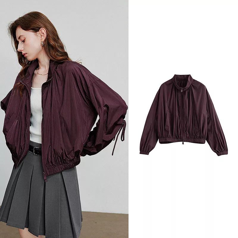 This piece features a flattering short cut, measuring between 4 to 16 inches in length, ideal for pairing with high-rise trousers or skirts. Crafted from durable yet lightweight nylon, it’s perfect for transitional autumn days and even into early winter. The full-length sleeves and stand-up collar offer added coverage, while the smooth zipper closure ensures easy wear. With its wide-waisted fit, this jacket flatters without clinging, giving you both style and breathing room.