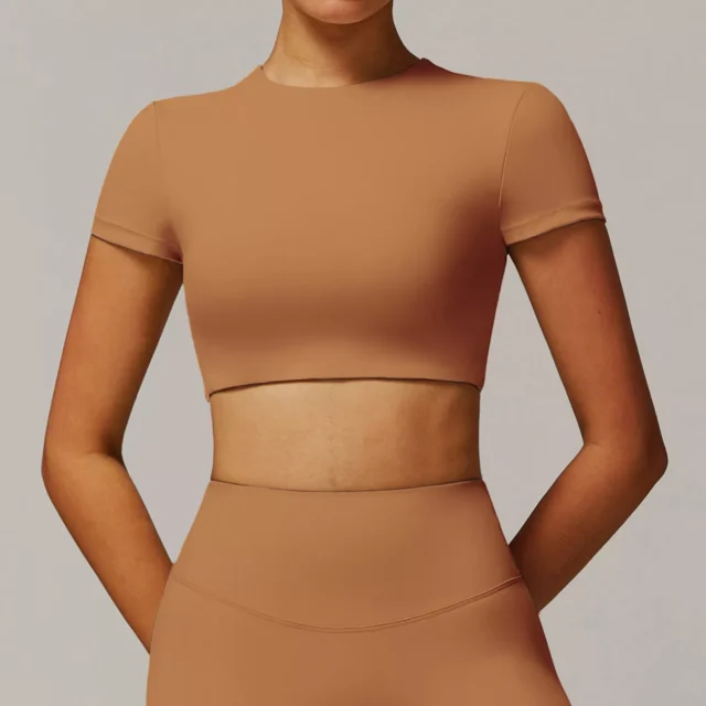 This short-sleeve sports top is designed for women who want both style and function. Wear it for your morning run, power yoga class, or a high-energy gym session. It pairs effortlessly with leggings, shorts, or joggers and is available in stunning colors like advanced black, navy blue, roasted coffee, pumpkin orange, and gray apricot.