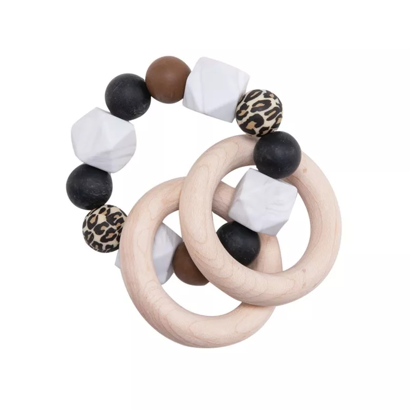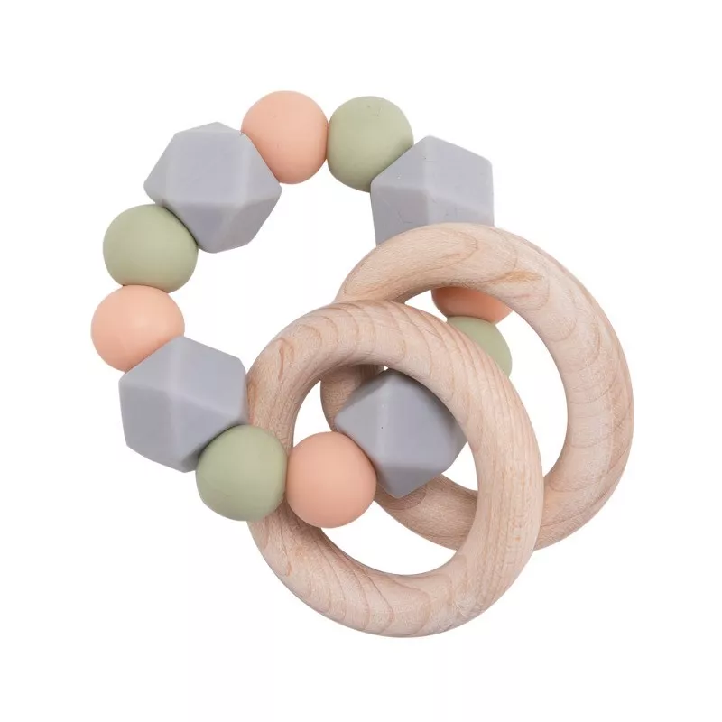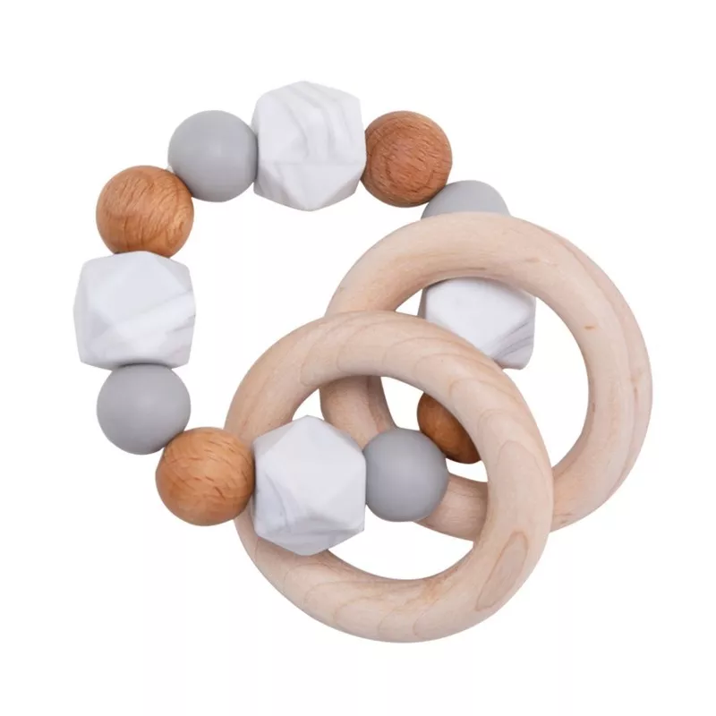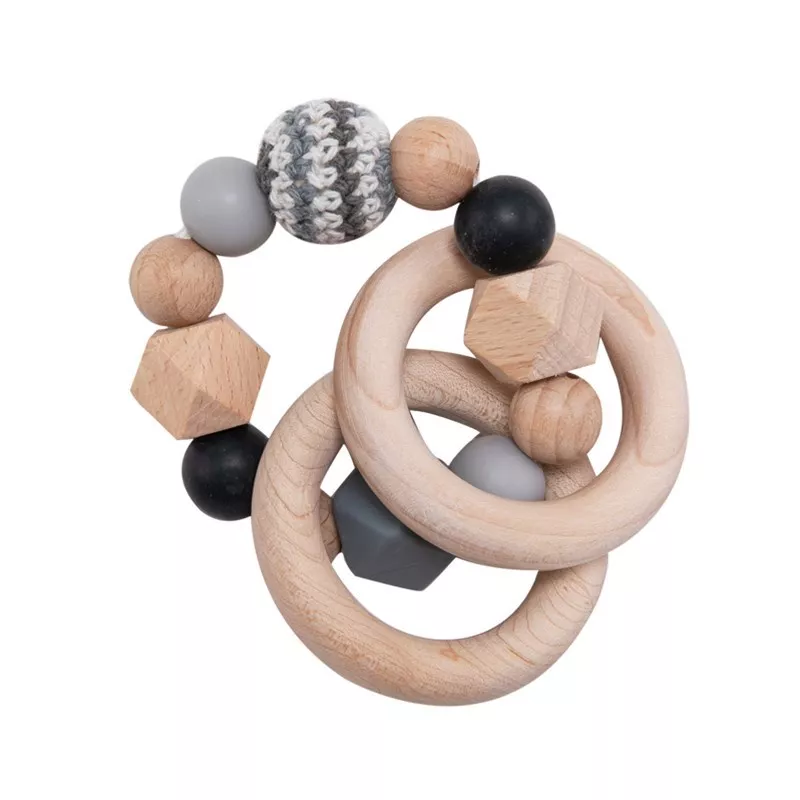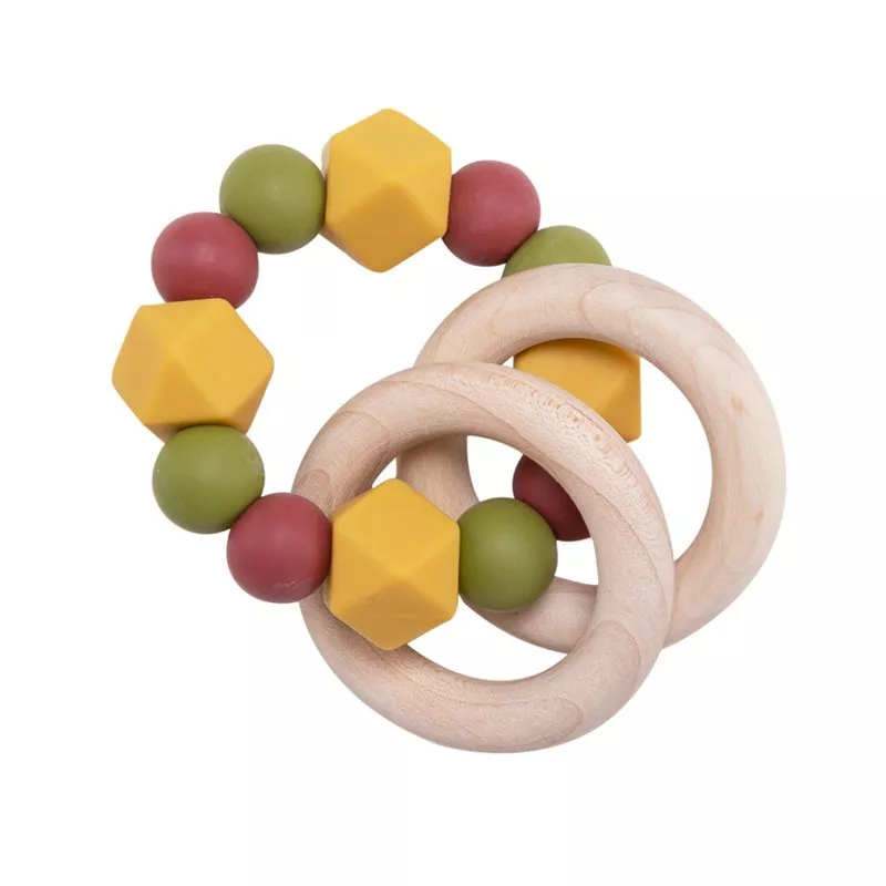 Wooden Baby Rattle Ring with BPA-Free Silicone Teething Beads