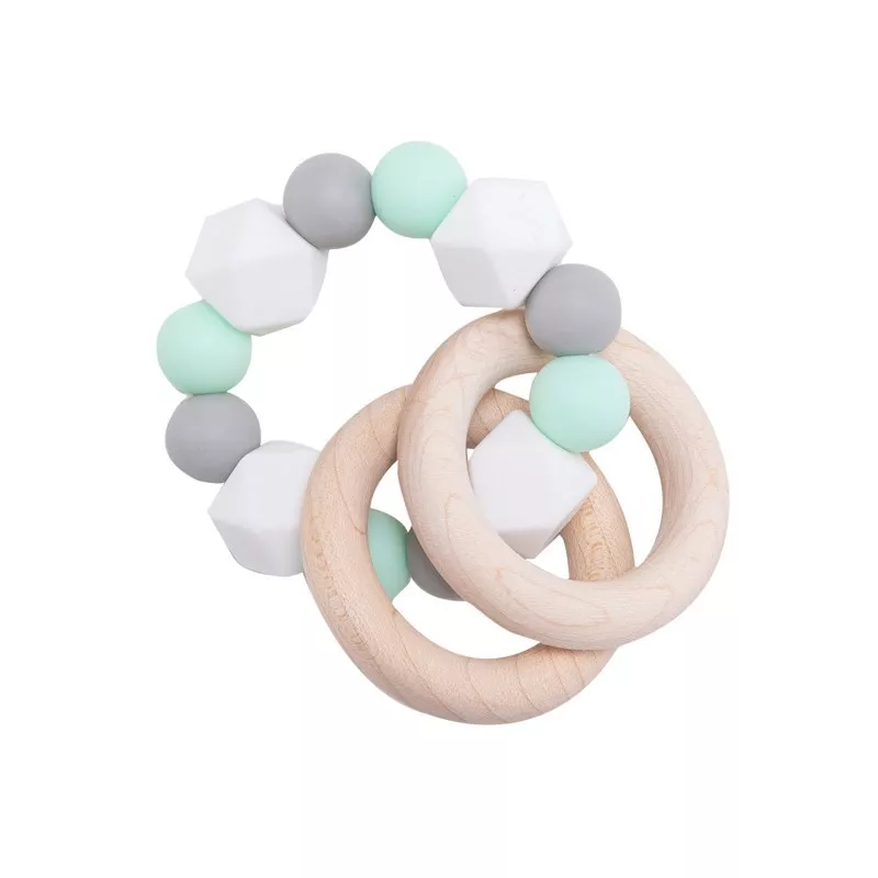 • Soothes teething pain with soft silicone beads and smooth wood