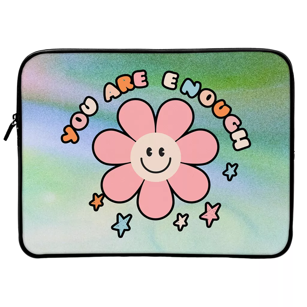 You Are Enough Laptop Sleeve 12-15 inch – Retro Flower Carrying Case Cover for MacBook – Motivational Dell, Asus, HP Laptop Sleeve