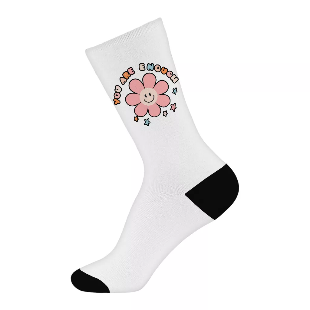 You Are Enough Unisex Socks – Motivational Socks – Retro Flower Crew Socks